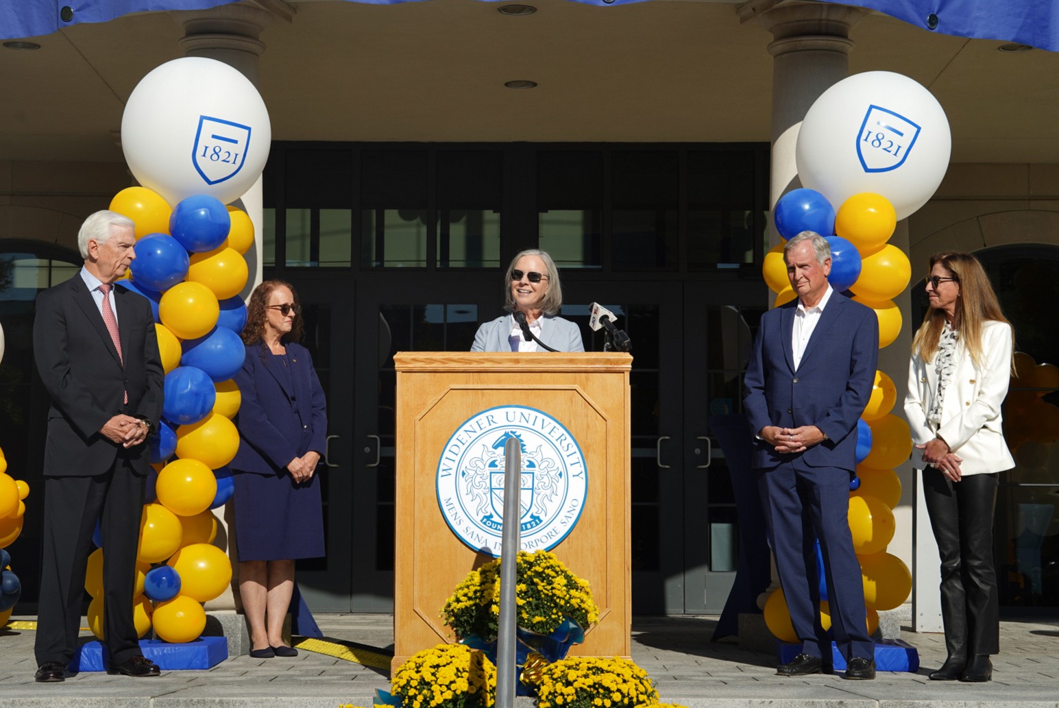 “This gift will open doors for students who dream of becoming nurses but need a helping hand to get there. And it will ensure that Widener remains at the forefront of nursing education,” said President Stacey Robertson, speaking to the crowd at the ribbon-cutting event.