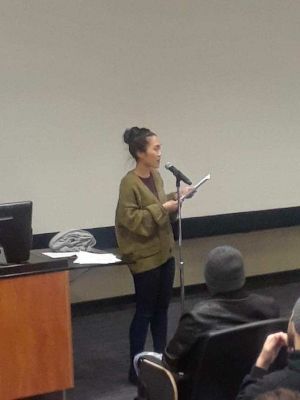 Oka concluded her visit with a public reading during which she read new, never-before-published work about Indonesian history and culture, specifically the 1960s mass killings, which the Indonesian government and citizens do not acknowledge.